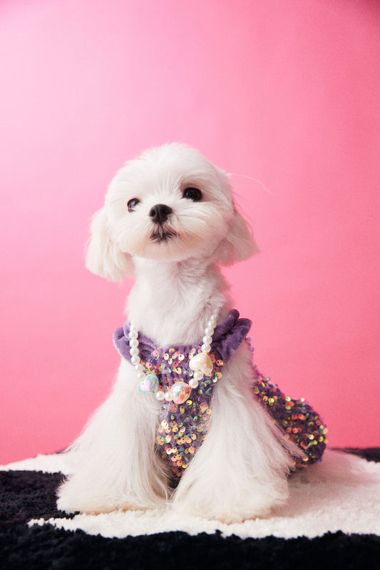 Purple Velvet Blingbling Sequin Pet Dress for Small and Medium Dogs, Queen Princess Outfit for Wedding, Party, Birthday, Holiday and Special Occasions (XS-XXL)