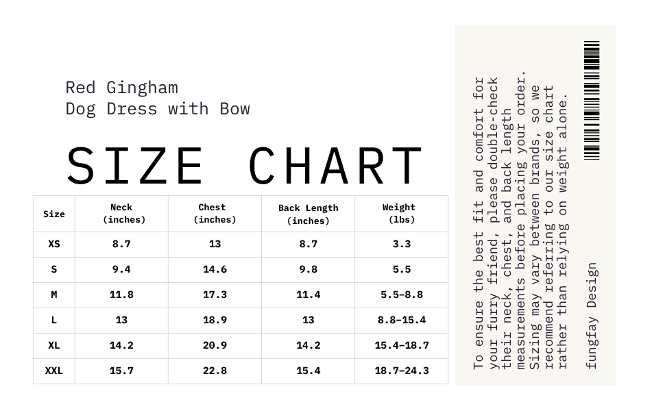 Red Gingham Dog Dress with Bow – Cute Checkered Outfit for Small Dogs